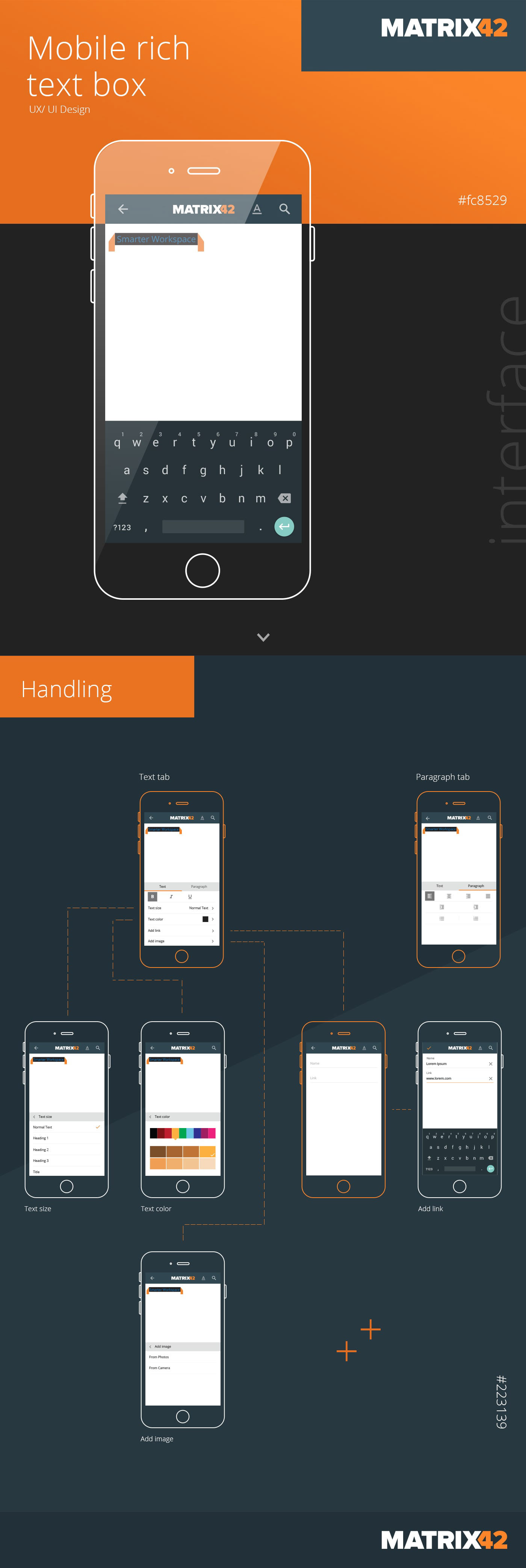 Client: Matrix42 Target user: Admins as well as end-users Goal: Solution to display additional text field functions like color, font size, alignment… for tablets from portrait view to mobile devices. Role: Prototype, Test, Mockup